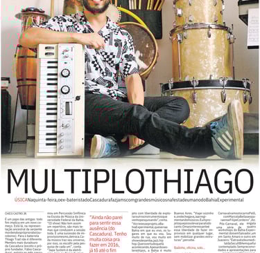 After Carnival, he will kick off a series of four Bahia Experimental workshops: two in Salvador, one in Santo Amaro, and another in Juazeiro. “It’s through a grant from SecultBA that I was awarded. There will always be invitations and presentations to show the public the results of the workshops. We will open registrations in February.” In the second half of the year, Thiago plans to release his first solo album, an instrumental disc. “I’ve already recorded piano, percussion, and drums. I’ve been composing for a good while. I recorded part of it with Stefano Cortese, an Italian conductor who lives in Vale do Capão, and in Salvador, with Tadeu Mascarenhas,” he shares.As if that weren’t enough, Thiago is also considering the possibility of accompanying guitarist Martin Mendonça (from Pitty, formerly of Cascadura) on a tour through the Northeast. “We did a show in December at Dubliner’s, with Cadinho on bass, and it was really great. We’re looking into the dates, but everything indicates that it will happen. There’s a lot going on in 2016,” he says. God willing.